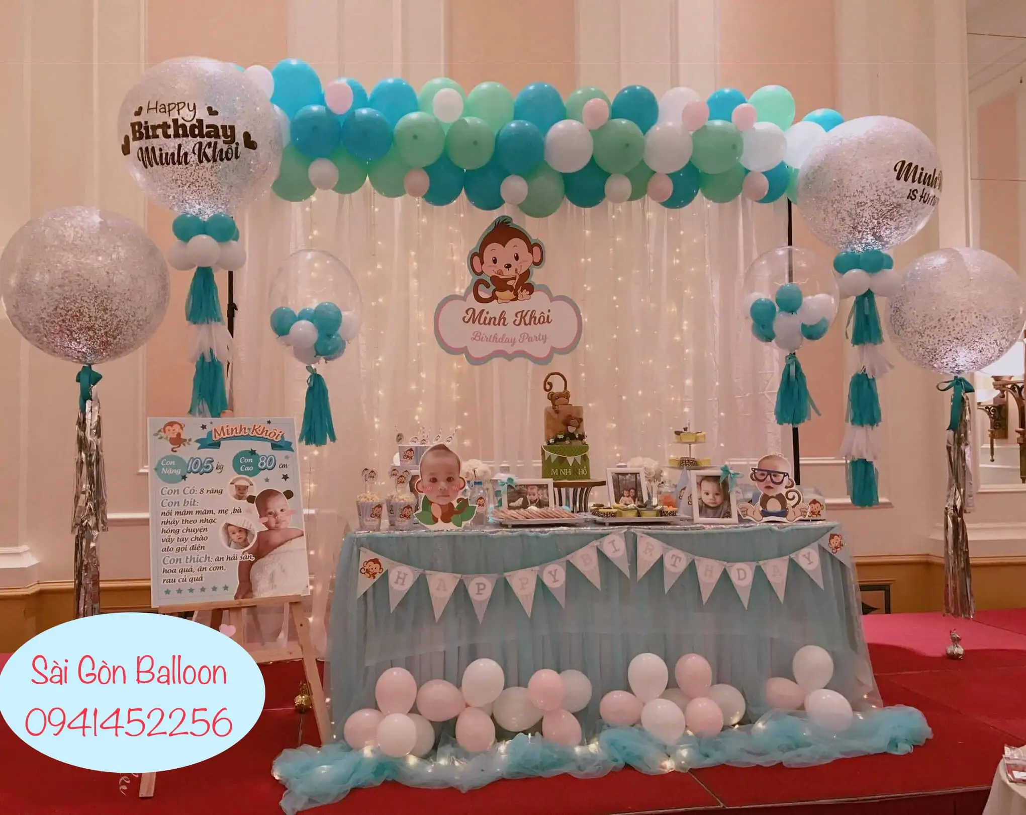 3. Bong bóng nghệ thuật trong trang trí thôi nôi bé trai 1 tuổi